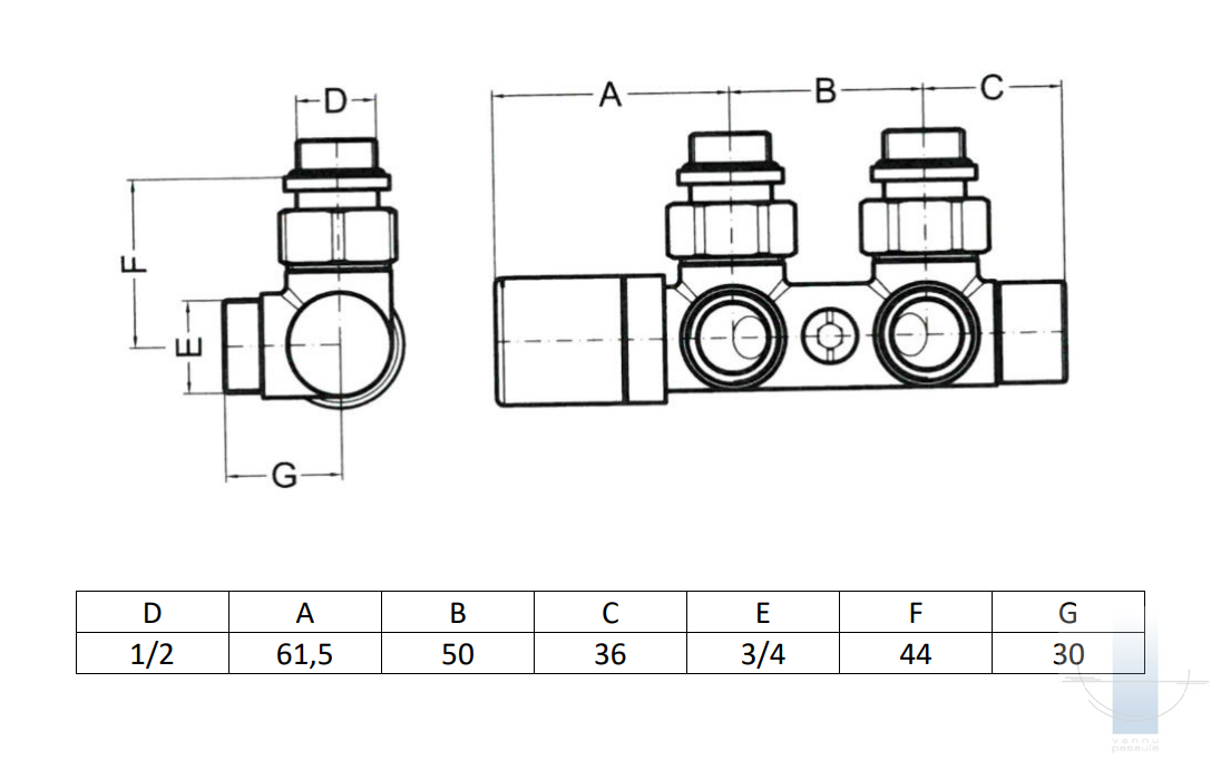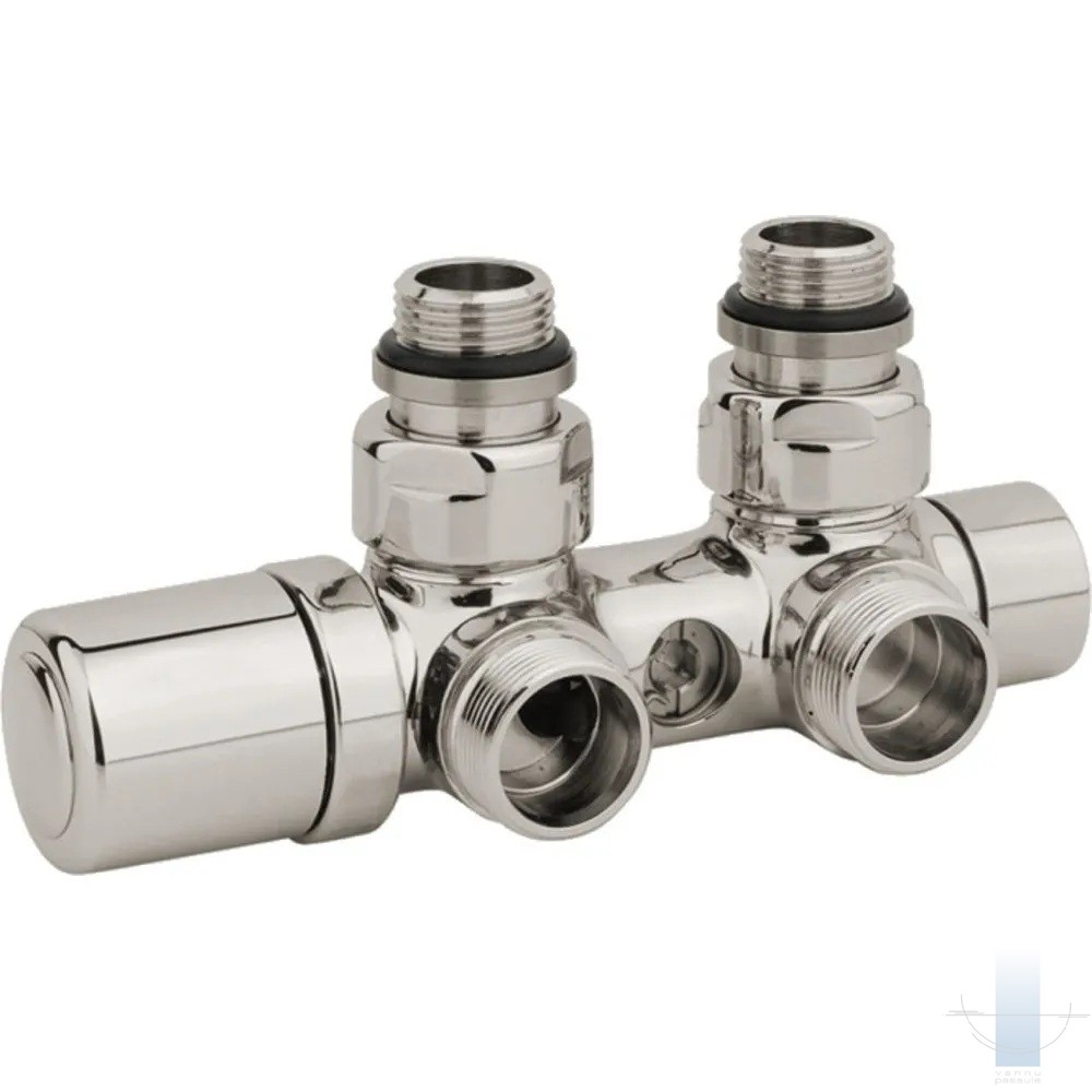 TWIN vārsts ir paredzēts pieslēgšanai vannas istabas radiatoriem ar ciešu centrālo pieslēgumu 50 mm attālumā.