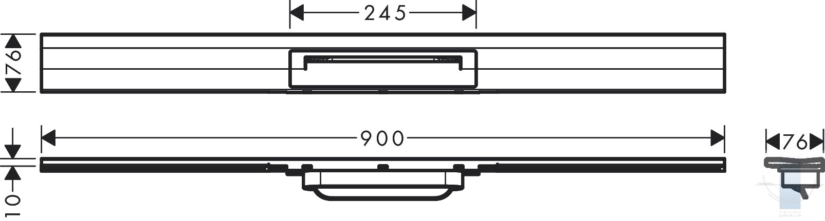 RainDrain Flex kanāla reste 900 mm,montāžai pie sienas, Matēts nerūsējošais tērauds