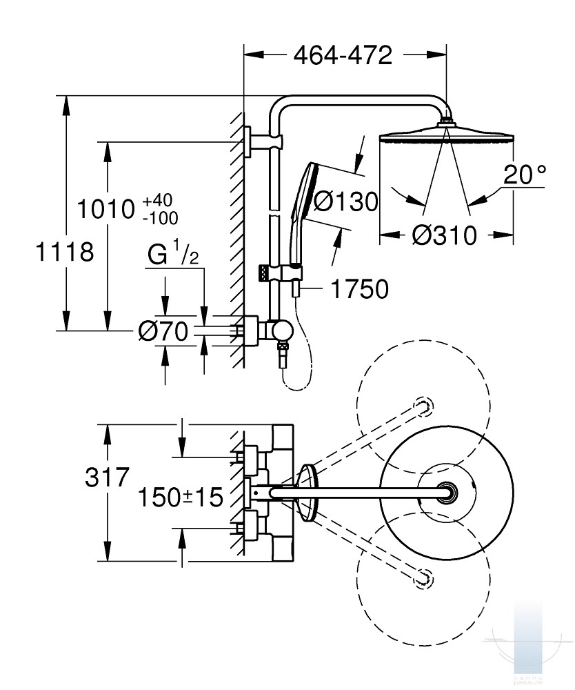 Grohe - Rainshower SmartActive 310 dušas sistēma ar termostatu, Supersteel