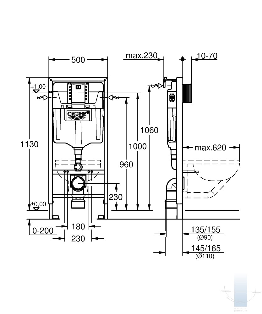 RAPID SL 2-IN-1 iebūvējamais WC rāmis-savienojams ar mini S taustiņu
