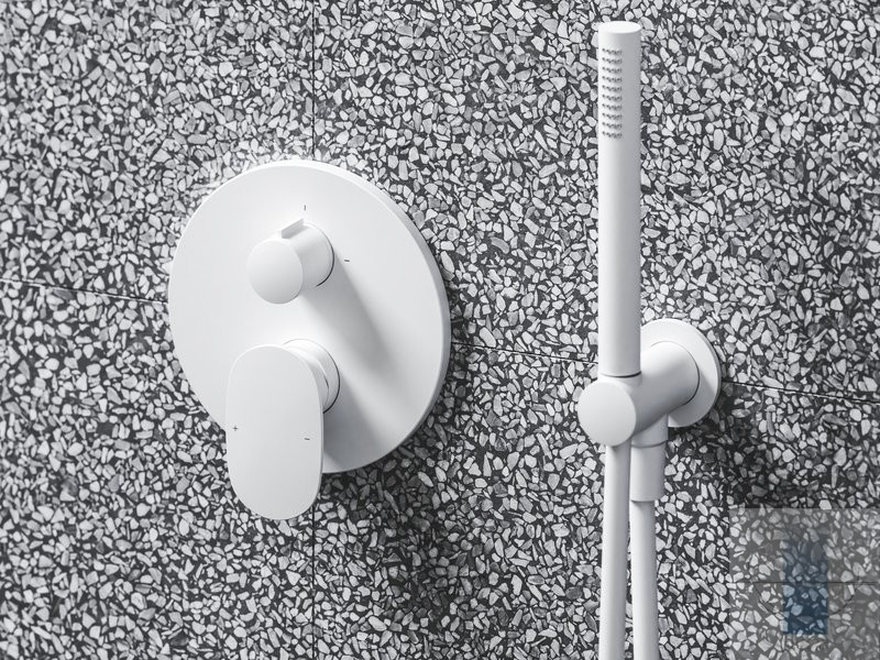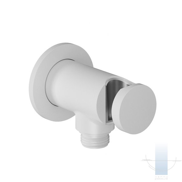 Divi praktiski izstrādājumi vienā. Kalpo kā ūdens izplūde dušas šļūtenēm, kā arī pilda rokas dušas turētāja funkciju. Piemērots visiem zemapmetuma montāžas maisītājiem.