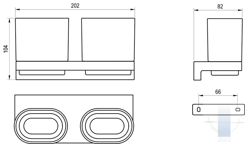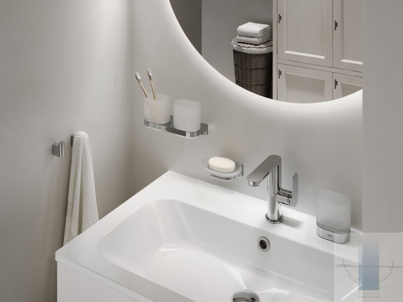 Divu glāžu turētājs tiek piestiprināts pie diviem dībeļiem un regulējamas metāla skava. Skrūvju atstatums ir 66 mm. Stiprinājuma komplekts ir iekļauts iepakojumā. Turētājs iekšpusē ir plastmasas gredzens, kas nodrošina maigu stikla trauka piegulšanu. Pilnvērtīgam vannas istabas dizainam iesakām izvēlēties citus Chrome II aksesuārus. Ārējās virsmas tīrīšanai iesakām izmantot RAVAK Cleaner Chrome.