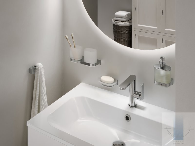 Dvieļu āķis ir piestiprināts pie diviem tapām un vienu metāla skavas plāksnēm. Skrūvju atstatums ir 18 mm. Stiprinājuma komplekts ir iekļauts iepakojumā. Pilnvērtīgam vannas istabas dizainam iesakām izvēlēties citus Chrome II aksesuārus. Ārējās virsmas tīrīšanai iesakām izmantot RAVAK Cleaner Chrome.