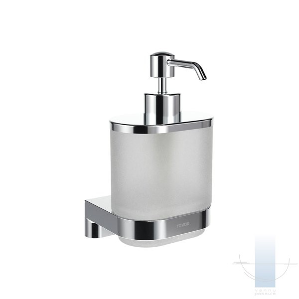 Turētājs ar ziepju dozatoru tiek piestiprināts pie diviem dībeļiem un regulējamas metāla skavas. Skrūvju atstatums ir 39 mm. Stiprinājuma komplekts ir iekļauts iepakojumā. Turētājs iekšpusē ir plastmasas gredzens, kas nodrošina maigu stikla trauka piegulšanu. Pilnvērtīgam vannas istabas dizainam iesakām izvēlēties citus Chrome II aksesuārus. Ārējās virsmas tīrīšanai iesakām izmantot RAVAK Cleaner Chrome.