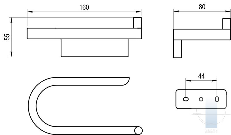 Tualetes papīra turētājs tiek piestiprināts pie diviem dībeļiem un regulējamas metāla skavas. Skrūvju atstatums ir 44 mm. Stiprinājuma komplekts ir iekļauts iepakojumā. Pilnvērtīgam vannas istabas dizainam iesakām izvēlēties citus Chrome II aksesuārus. Ārējās virsmas tīrīšanai iesakām izmantot RAVAK Cleaner Chrome.