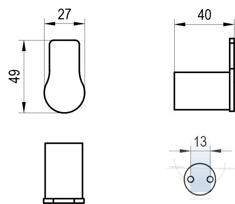 Dvieļu āķis ir piestiprināts pie diviem tapām un vienu metāla skavas plāksnēm. Skrūvju atstatums ir 13 mm. Stiprinājuma komplekts ir iekļauts iepakojumā. Pilnvērtīgam vannas istabas dizainam iesakām izvēlēties citus Fold aksesuārus. Ārējās virsmas tīrīšanai iesakām izmantot RAVAK Cleaner Chrome.