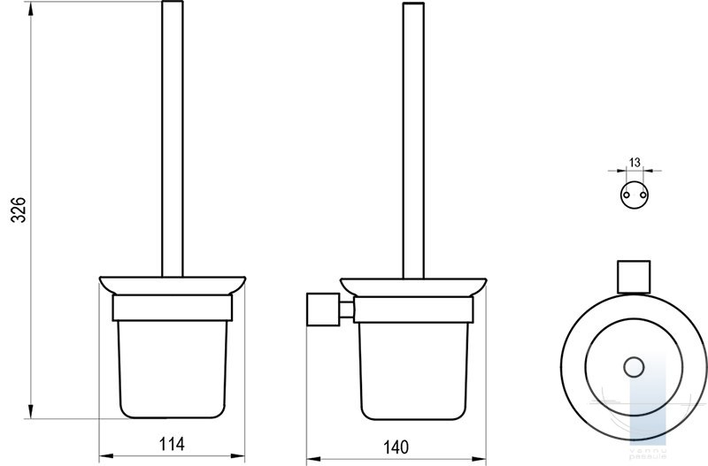 Klozetpoda birste ar turētāju tiek piestiprināts pie diviem dībeļiem un regulējamas metāla skavas. Skrūvju atstatums ir 13 mm. Stiprinājuma komplekts ir iekļauts iepakojumā. Pilnvērtīgam vannas istabas dizainam iesakām izvēlēties citus Fold aksesuārus. Ārējās virsmas tīrīšanai iesakām izmantot RAVAK Cleaner Chrome.