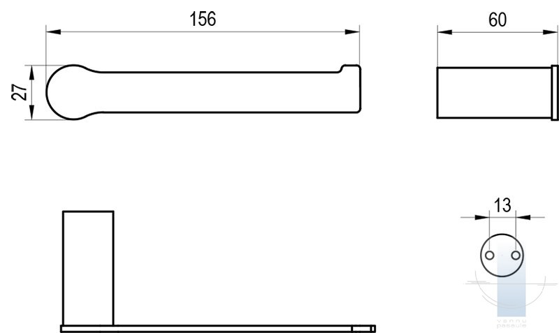 Tualetes papīra turētājs tiek piestiprināts pie diviem dībeļiem un regulējamas metāla skavas. Skrūvju atstatums ir 13 mm. Stiprinājuma komplekts ir iekļauts iepakojumā. Pilnvērtīgam vannas istabas dizainam iesakām izvēlēties citus Fold aksesuārus. Ārējās virsmas tīrīšanai iesakām izmantot RAVAK Cleaner Chrome.