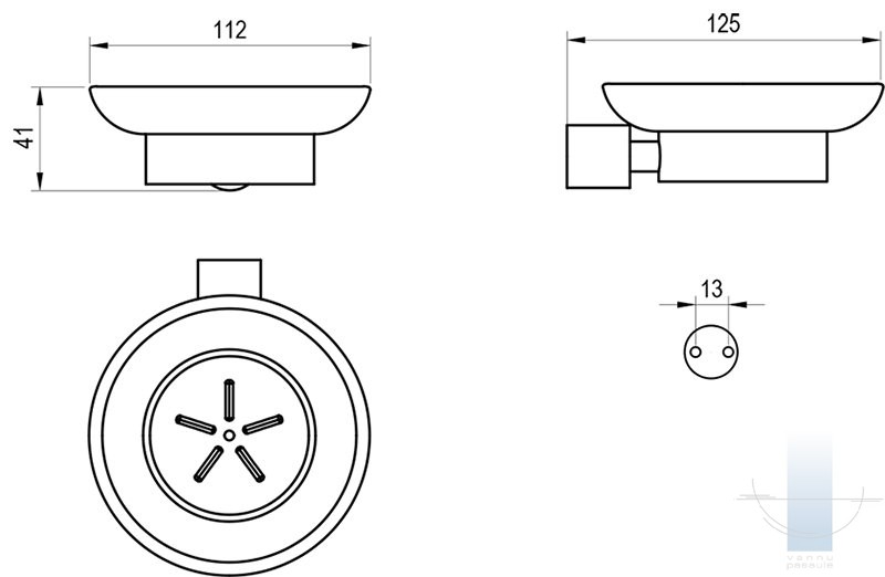 Tureklis ar ziepju trauku tiek piestiprināts pie diviem dībeļiem un regulējamas metāla skavas. Skrūvju atstatums ir 13 mm. Stiprinājuma komplekts ir iekļauts iepakojumā. Turētājs iekšpusē ir plastmasas gredzens, kas nodrošina maigu stikla trauka piegulšanu. Pilnvērtīgam vannas istabas dizainam iesakām izvēlēties citus Fold aksesuārus. Ārējās virsmas tīrīšanai iesakām izmantot RAVAK Cleaner Chrome.