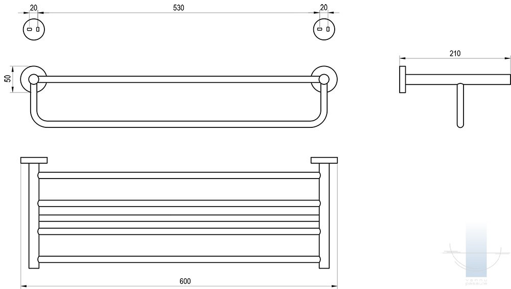 Plaukts ar stieni ir piestiprināts pie četrām tapām un divām metāla skavas plāksnēm. Skrūvju atstatums ir 20 mm. Stiprinājuma komplekts ir iekļauts iepakojumā. Pilnvērtīgam vannas istabas dizainam iesakām izvēlēties citus Kona aksesuārus. Ārējās virsmas tīrīšanai iesakām izmantot RAVAK Cleaner Chrome.