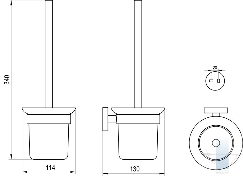 Klozetpoda birste ar turētāju tiek piestiprināts pie diviem dībeļiem un regulējamas metāla skavas. Skrūvju atstatums ir 20 mm. Stiprinājuma komplekts ir iekļauts iepakojumā. Pilnvērtīgam vannas istabas dizainam iesakām izvēlēties citus Kona aksesuārus. Ārējās virsmas tīrīšanai iesakām izmantot RAVAK Cleaner Chrome.