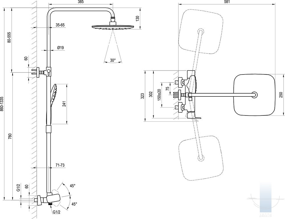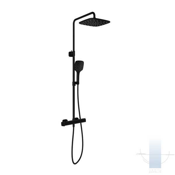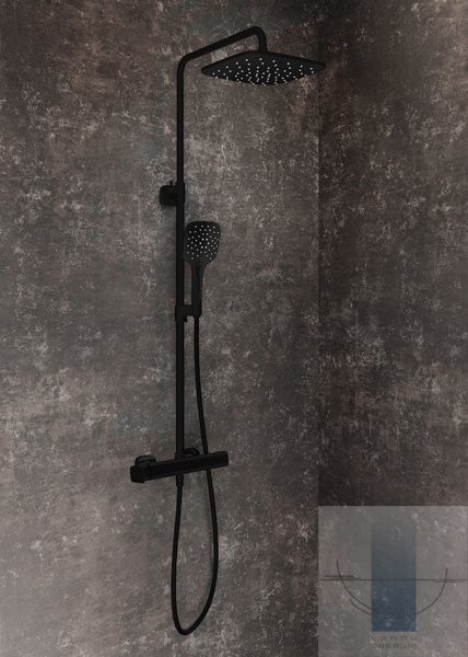 Dušas kolonna tiek uzstādīta pie sienas. Tās augstumu var regulēt, izmantojot kronšteina mehānismu – vienkārši ar roku, jebkurā laikā pēc uzstādīšanas. Slēdzis ļauj izvēlēties ūdens plūsmu no augšējās vai rokas dušas.