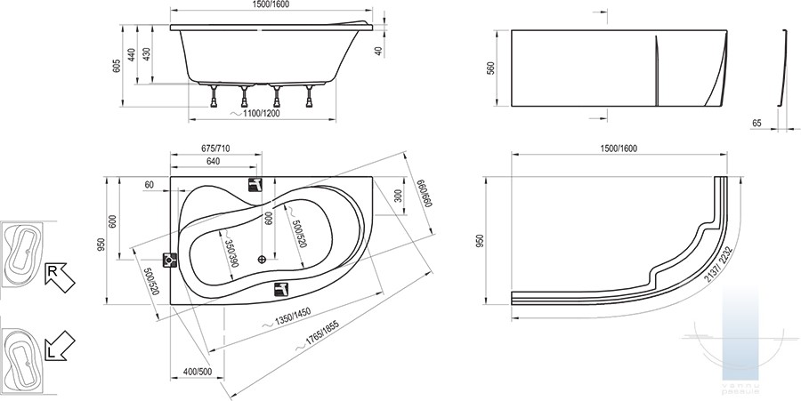 Ravak vanna Rosa 95 150x95 cm, Balta