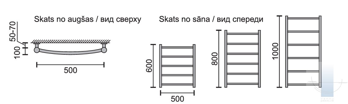 R dvieļu žāvētājs 500x800, Nerūsējošais tērauds