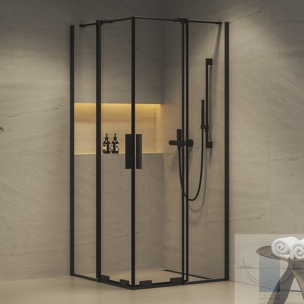 Roll RORV2 dušas stūris 80x80 cm, Melns/Caurspīdīgs stikls