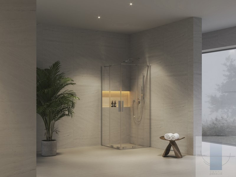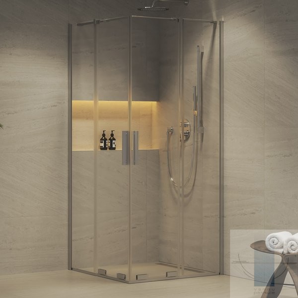 Roll RORV2 dušas stūris 90x90 cm, Hroms/Caurspīdīgs stikls