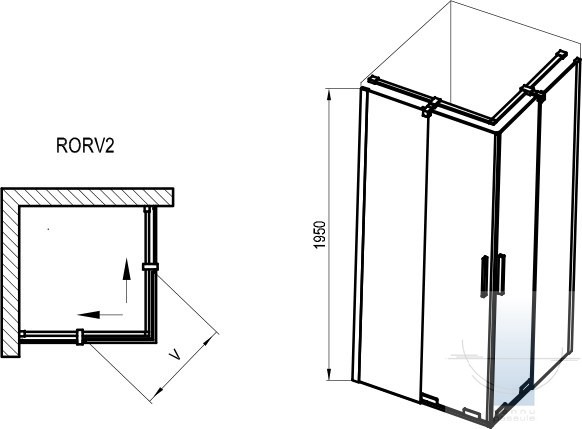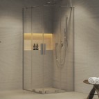Četrdaļīgs taisnstūrveida dušas stūris ar bīdāmām durvīm
