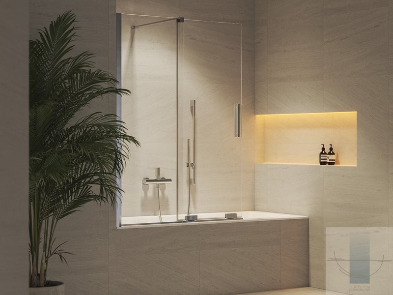 Roll ROVS2 vannas sieniņa 100 cm, Hroms/Caurspīdīgs stikls