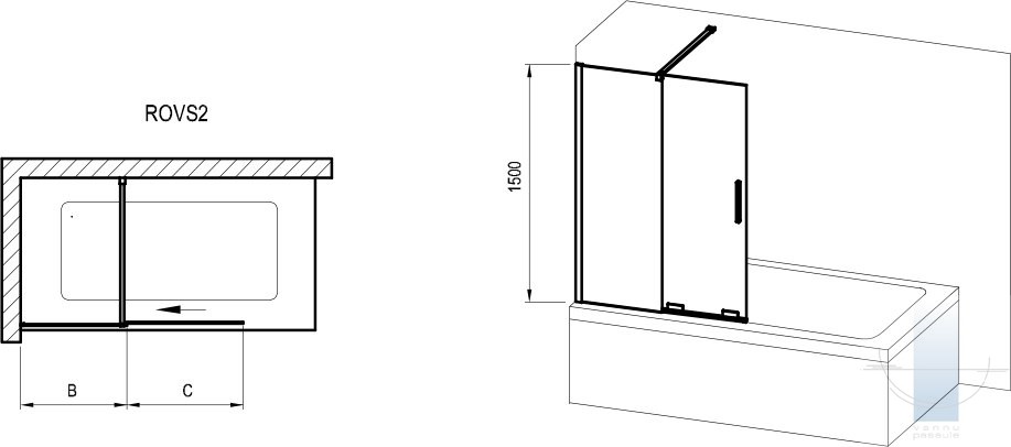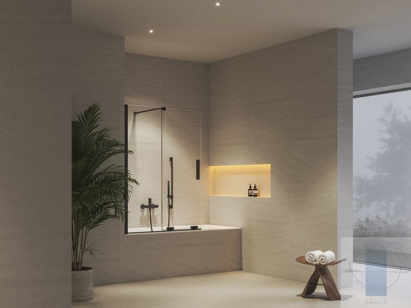Roll ROVS2 vannas sieniņa 100 cm, Melns/Caurspīdīgs stikls