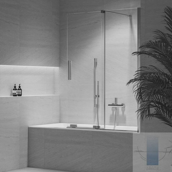 Roll ROVS2 vannas sieniņa 110 cm, Hroms/Caurspīdīgs stikls