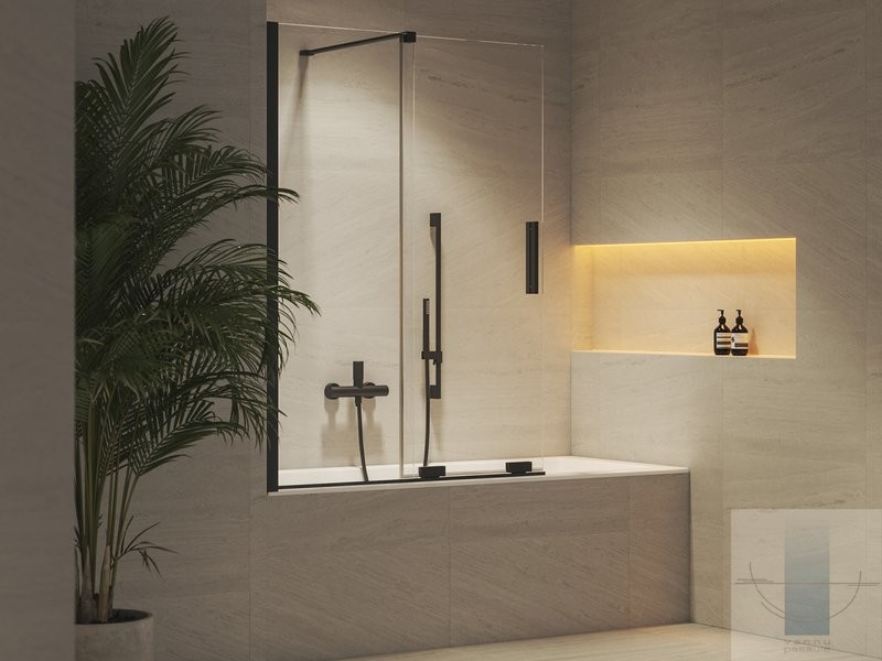 Roll ROVS2 vannas sieniņa 110 cm, Melns/Caurspīdīgs stikls