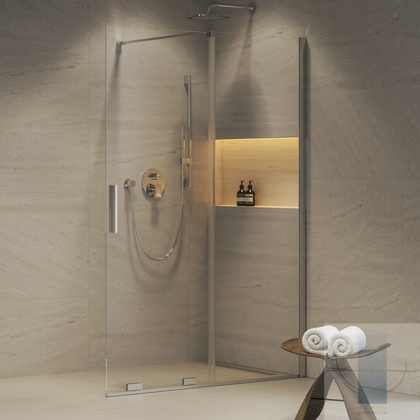 Roll ROWI dušas siena ar durvīm Walk in 110, Hroms/Caurspīdīgs stikls