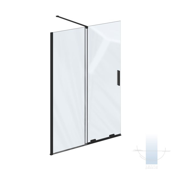 Roll ROWI dušas siena ar durvīm Walk in 110, Melns/Caurspīdīgs stikls