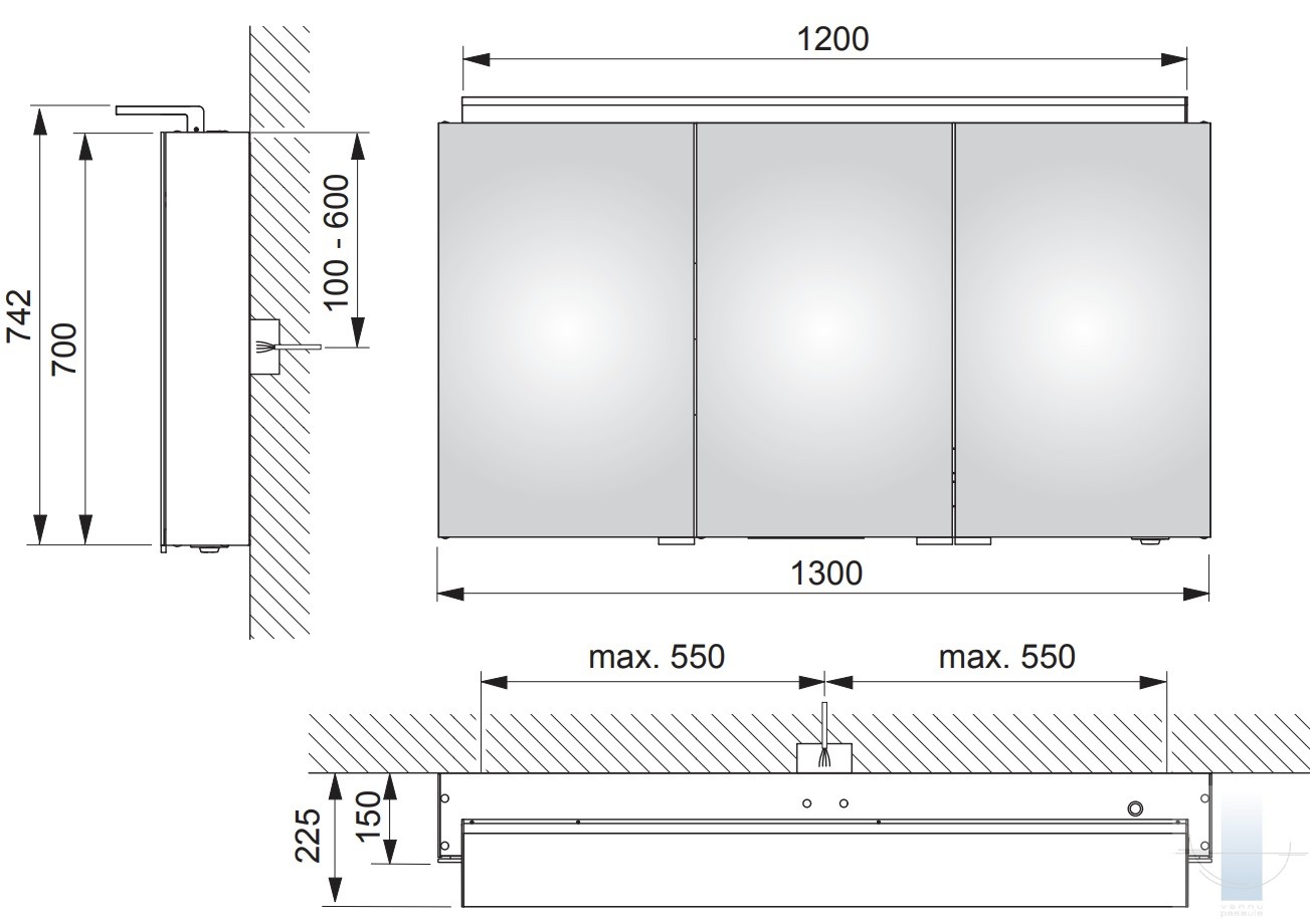 Royal L1 spoguļskapis 130x74x15 cm + LED apgaismojums