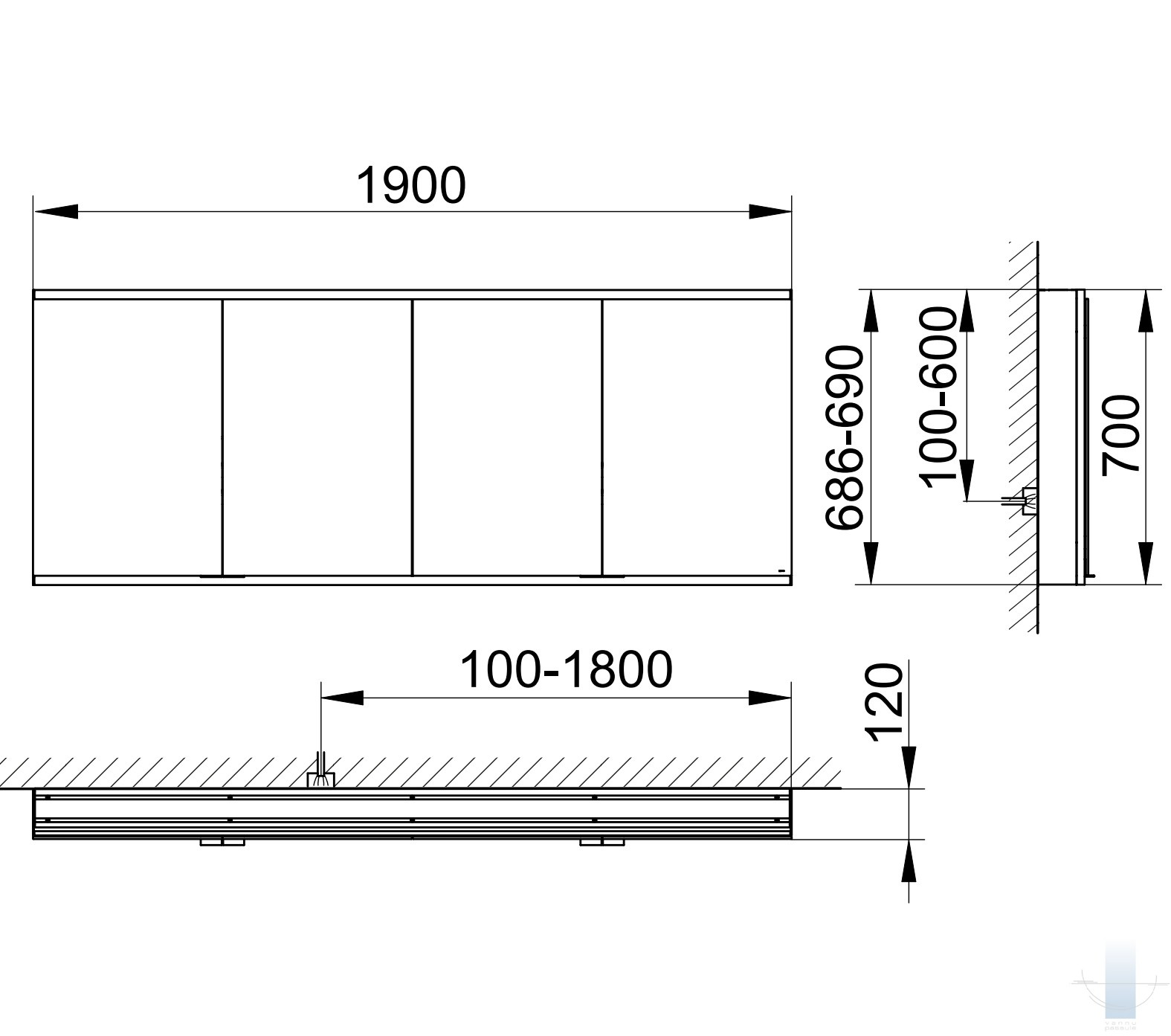 Royal Modular 2.0 spoguļskapis 190x70x12 cm + LED apgaismojums