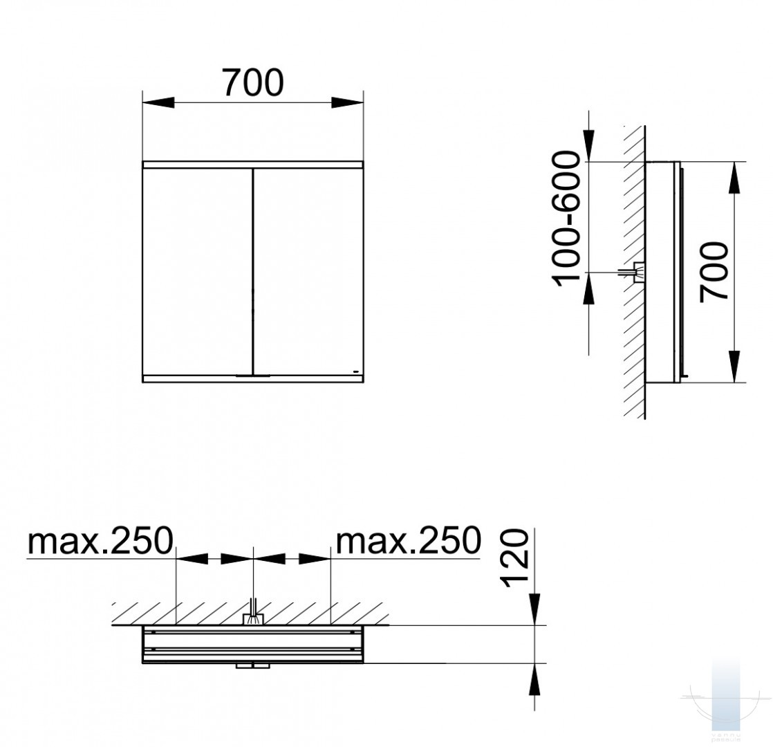 Royal Modular 2.0 spoguļskapis 70x70x12 cm + LED apgaismojums
