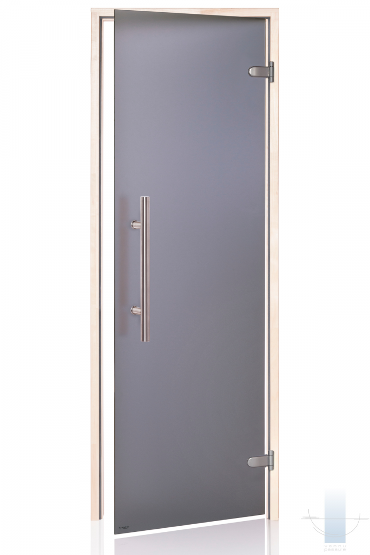 Saunas durvis tiek izgatavotas no 8 mm rūdīta stikla. Durvju komplektācija iespējama ar dažādu veidu tonētiem stikliem: pelēks, bronza. Saunas durvju kārba izgatavota no līmētas lapu koka koksnes. Saunas durvīm izmanto speciāli stikla vērtnēm paredzētas firmas “Abloy” eņģes KS-6540, FL-48; firmas “Abloy” fiksators “Abloy-4238”. Saunas durvīm ir kārbas blīvējums – karstumizturīgs silikons.
