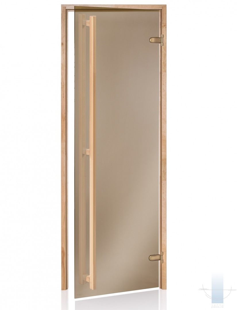 Saunas durvis tiek izgatavotas no 8 mm rūdīta stikla. Durvju komplektācija iespējama ar dažādu veidu tonētiem stikliem: pelēks, bronza. Saunas durvju kārba izgatavota no līmētas lapu koka koksnes. Saunas durvīm izmanto speciāli stikla vērtnēm paredzētas firmas “Abloy” eņģes KS-6540, FL-48; firmas “Abloy” fiksators “Abloy-4238”. Saunas durvīm ir kārbas blīvējums – karstumizturīgs silikons.