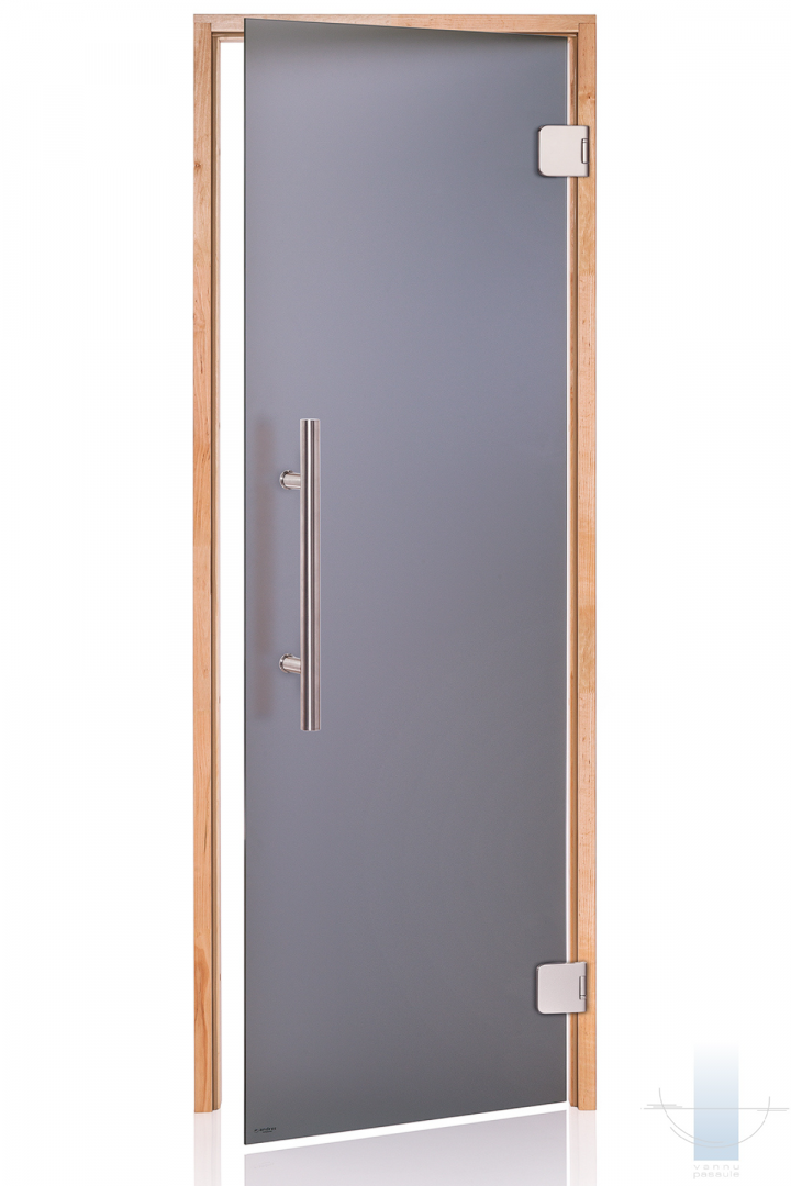 Saunas durvis tiek izgatavotas no 8 mm rūdīta stikla. Durvju komplektācija iespējama ar dažādu veidu tonētiem stikliem: pelēks, bronza. Saunas durvju kārba izgatavota no līmētas lapu koka koksnes. Saunas durvīm izmanto speciāli stikla vērtnēm paredzētas firmas “Abloy” eņģes KS-6540, FL-48; firmas “Abloy” fiksators “Abloy-4238”. Saunas durvīm ir kārbas blīvējums – karstumizturīgs silikons.