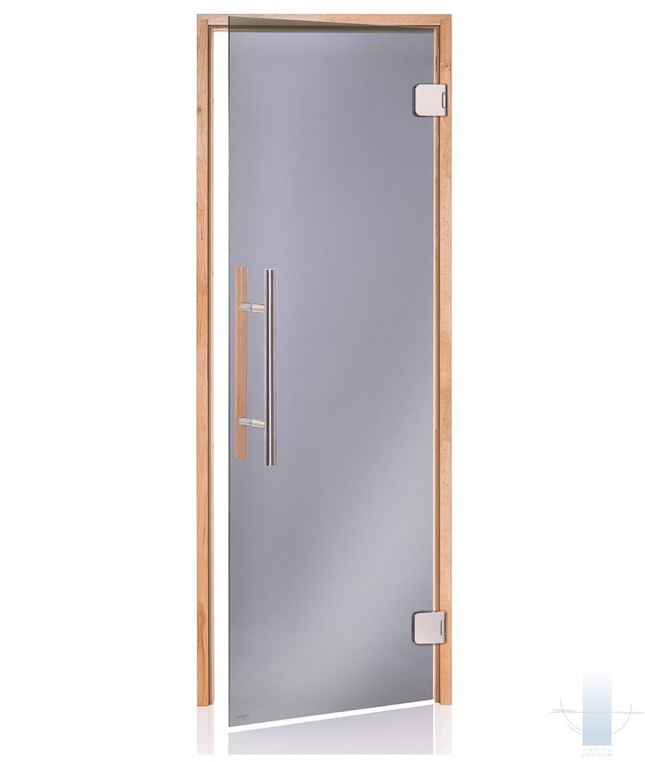 Saunas durvis tiek izgatavotas no 8 mm rūdīta stikla. Durvju komplektācija iespējama ar dažādu veidu tonētiem stikliem: pelēks, bronza. Saunas durvju kārba izgatavota no līmētas lapu koka koksnes. Saunas durvīm izmanto speciāli stikla vērtnēm paredzētas firmas “Abloy” eņģes KS-6540, FL-48; firmas “Abloy” fiksators “Abloy-4238”. Saunas durvīm ir kārbas blīvējums – karstumizturīgs silikons.