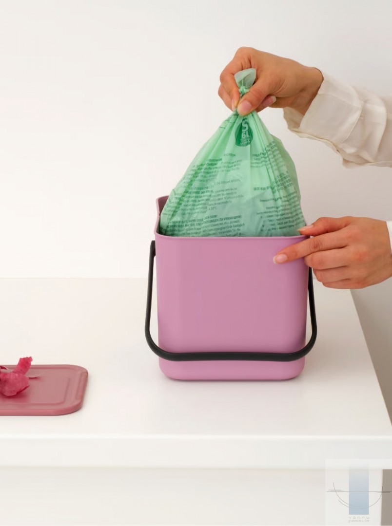 Šī jaukā 6 litru Brabantia Sort & Go atkritumu tvertne ar atvērtu vāku ir lieliski piemērota mizām, atgriezumiem, pārpalikumiem... patiesībā visiem organiskajiem virtuves atkritumiem. Vienkārši novietojiet to uz darba virsmas, atvilktnē vai pakariniet pie sienas ar komplektā iekļauto sienas kronšteinu. Pilna? Satveriet to aiz ērtā roktura un iztukšojiet. Un vai vēlaties atkritumu maisu ar to? PerfectFit 100% kompostējamie maisiņi, kods S, ir ideāli piemēroti - un arī viegli uzstādāmi! XS izmērs, XL ērtības.