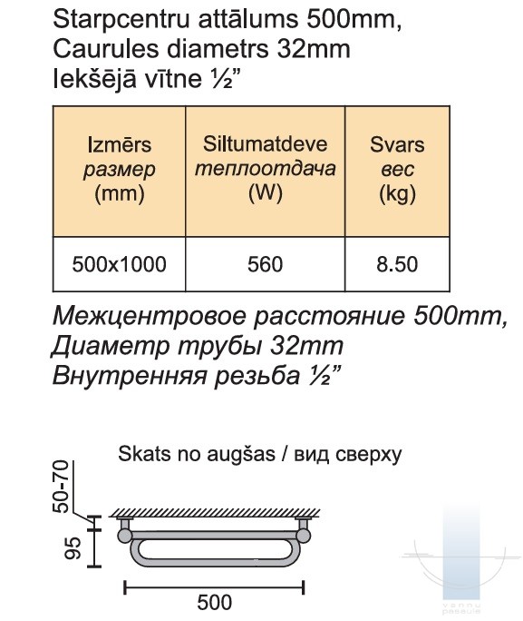 Tango dvieļu žāvētājs 500x1000, Nerūsējošais tērauds