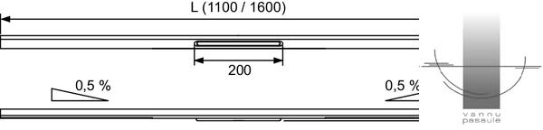 Dušas profils dušas notekai, uzstādīšanai flīžu līmē virs klona un blīvējuma.