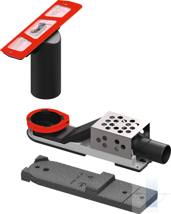 Noteka ar brīvas plūsmas tehnoloģiju TECEdrainway dušas profiliem, uzstādīšanai klonā, pieslēgšanai DN 50 notekas caurulei (180° pagriežama). Ar rūpnīcā uzstādītu Seal System blīvējuma apkakli. Atbilst EN 1253-1 un DIN 18534prasībām.