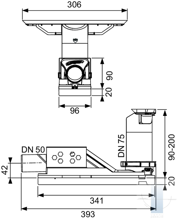 TECEdrainway horizontāla noteka “standard”, DN 50