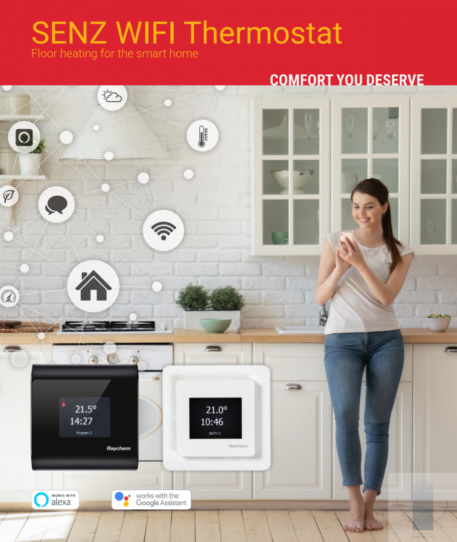 Programmējams touch-screen termostats ar WiFi atbalstu elektriskai grīdas apsildei. Apvieno ērtu lietošanu, estētisko dizainu un spēju tālvadībai, izmantojot programmatūras lietojumprogrammu, nodrošinot nepieredzētu elektriskās grīdas apsildes sistēmas komfortu.
