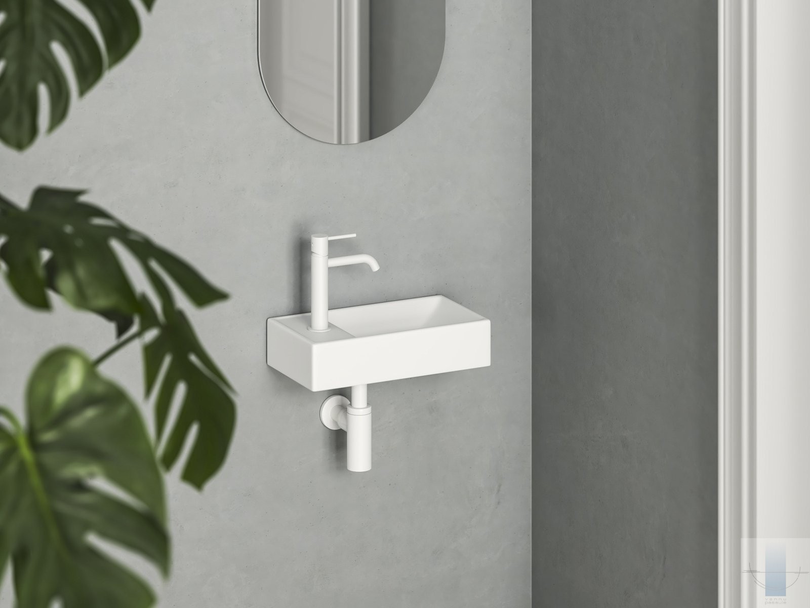 Izlietne Veda Wall 40 L, ar jaucējkrāna caurumu, bez pārplūdes atveres, matēti balta