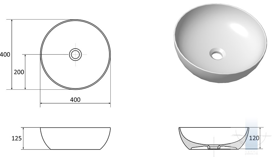 UNI 400 B SLIM izlietne uz virsmas Ø 400 mm, bez pārpludes, antracīta