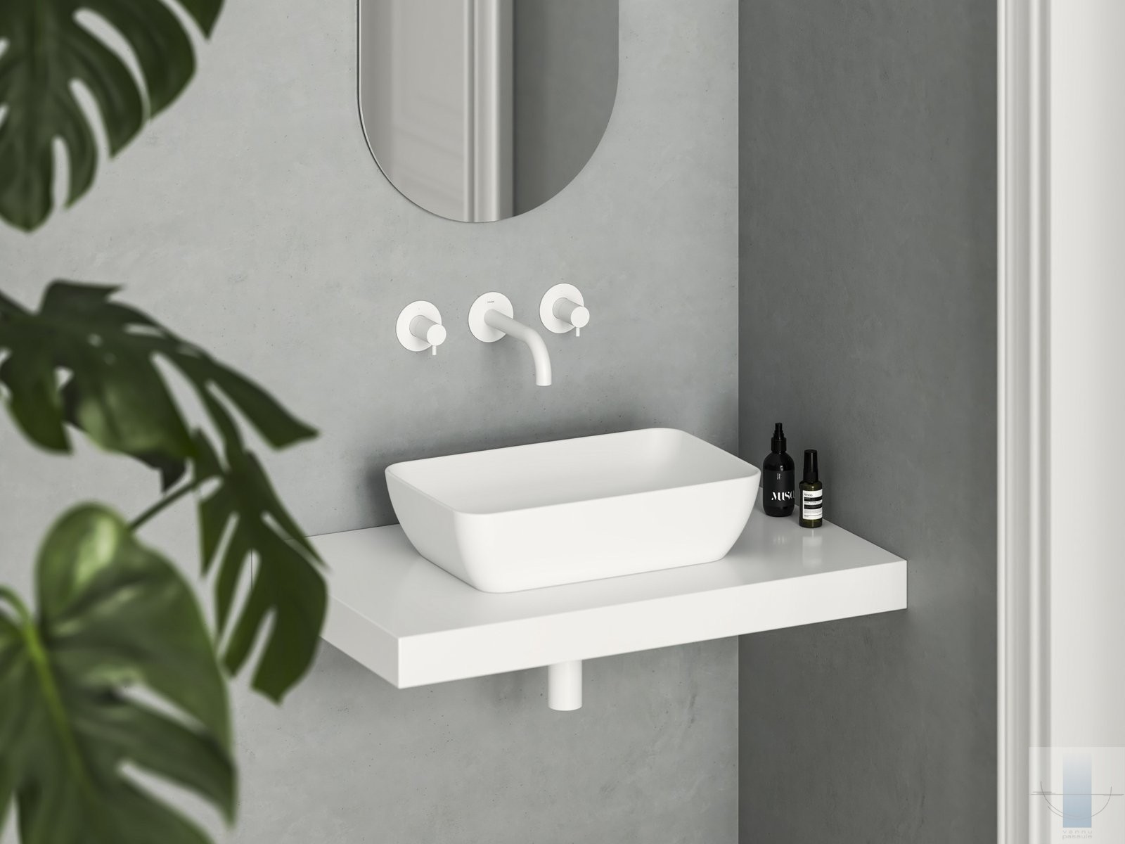 Pieejamie aksesuāri: darba virsmas/darbvirsmas skapītis, fiksēta izlietnes notekas vārsts, keramikas plakana notekas vārsts, matēta balta, melna vai mēbeļu sifons, īpaši pagarināts Chrome II, 10°, Puri, Espirit vai Eleganta jaucējkrāni