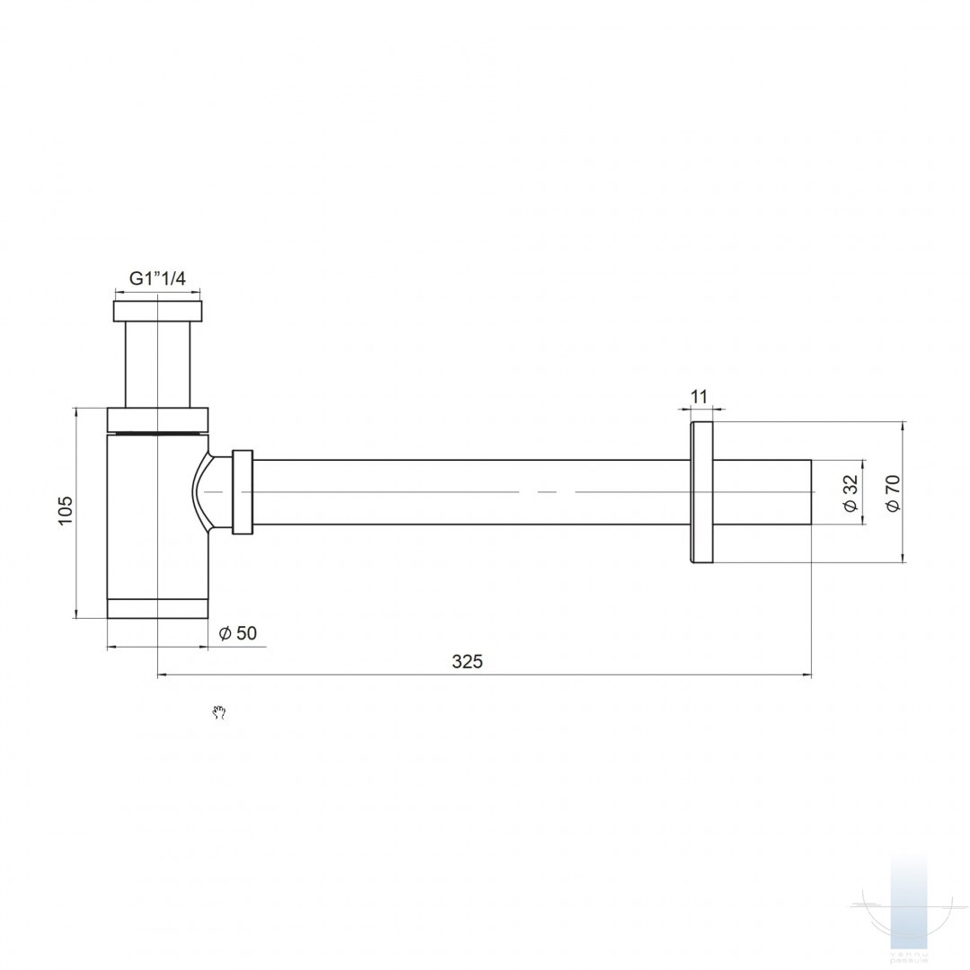 kanalizācijas diametrs ir 32 mm.