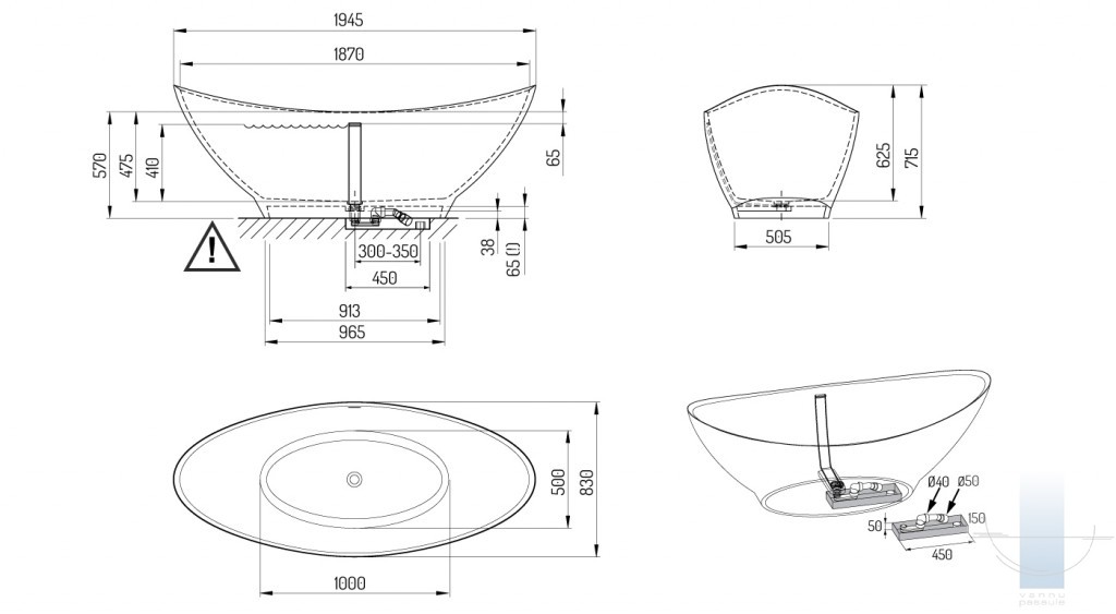 *FELICE vannas sifona apakšējai daļai ir nepieciešams 50 mm padziļinājums grīdā (uzstādīšanas instrukciju skatīt www.paabaths.com/lv/).