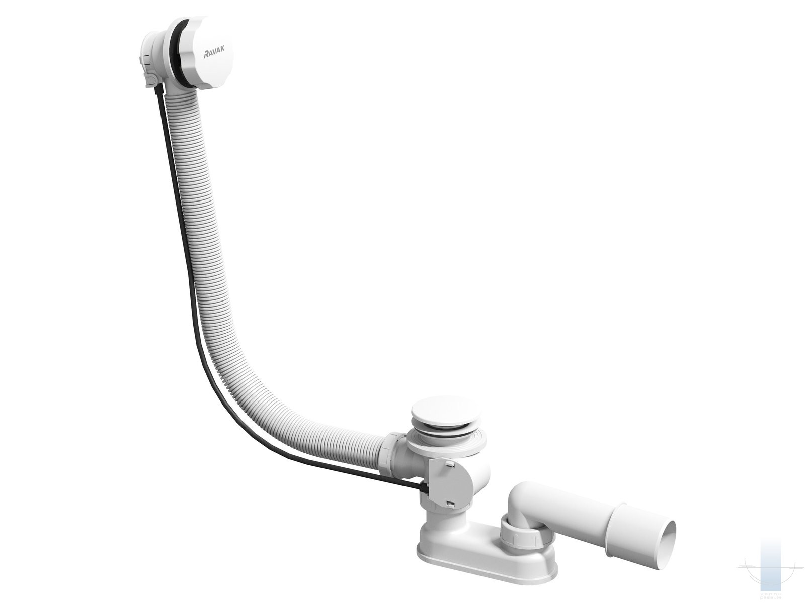 Jūs varat izvēlēties vannas notekas komplektus ar 800 mm pārplūdi ar trosītes vadību vai Click-Clack mehānismu. Katrā komplektā ir arī sifons (smaku slazds.) Boudena mehānismā augšējā daļa un iztukšošanas vārsts ir savienoti ar boudēna kabeli. Pagrieziet vadības pogu, lai aizvērtu vai atvērtu vārstu. Pārplūdes un notekas vāciņš matēti melnā krāsā. Izmantojot Click-Clack mehānismu, nospiediet, lai aizvērtu iztukšošanas vārstu, un nospiediet vēlreiz, lai to atkal atvērtu. Pārplūdes aizbāznis un vāciņš ir metāla. Vannas notekas komplekti ar garumu 800 mm ir piemēroti visu veidu vannām, izņemot Formy 01, Formy 02. Vannas notekas komplekts ar Click-Clack mehānismu ir piemērots BeHappy II vannai.