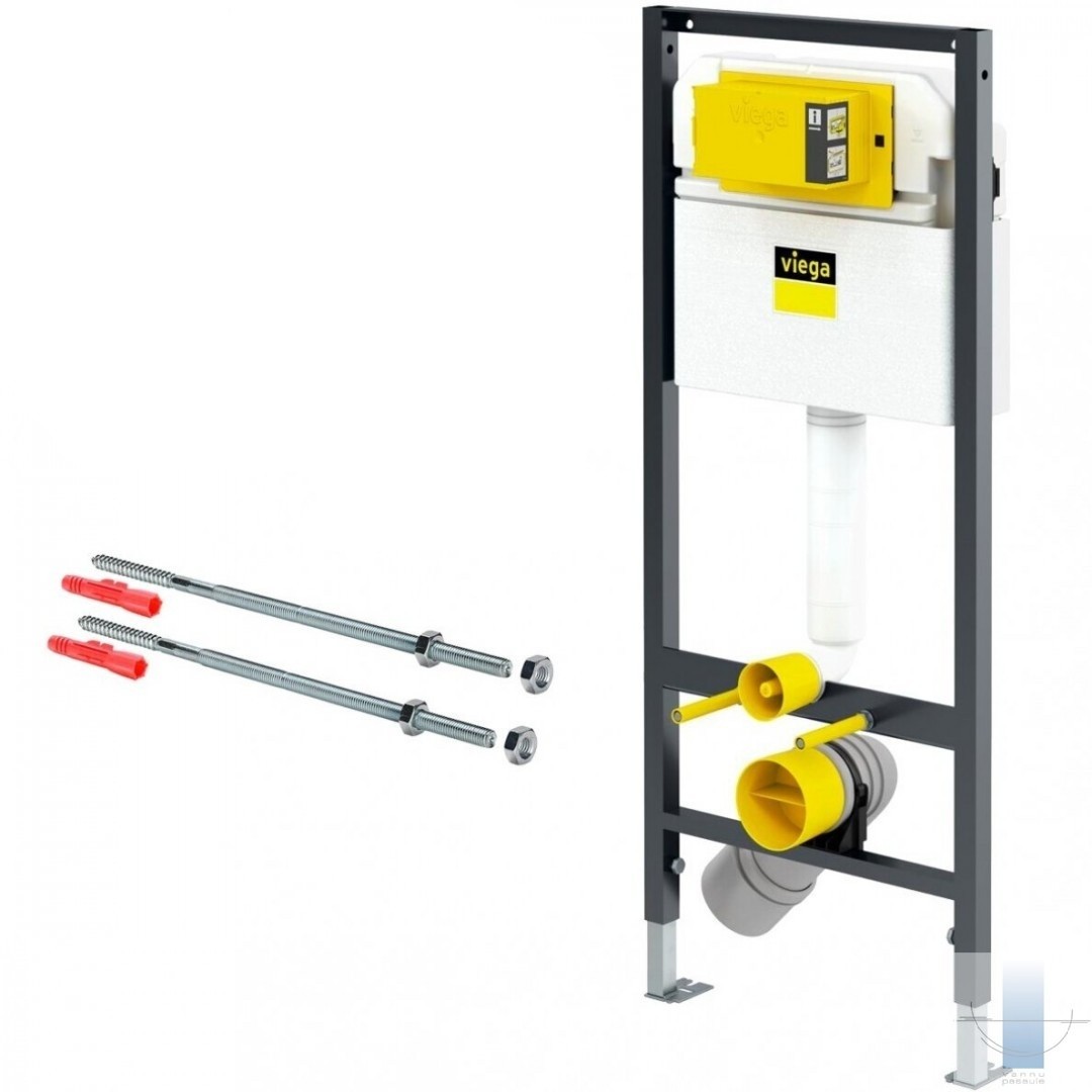 Pulverkrāsots rāmis (30x30), slēptā cisterna 3H, WC savienojuma armatūra, stiprinājuma materiāls, ūdens savienojums R½ aizmugurē, WC savienojuma elkonis DN90 (regulējams dziļums) izgatavots no PP, ekscentriskais adapteris DN90/100 izgatavots no PP