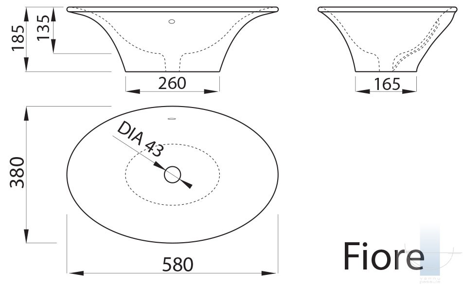 Vispool izlietne ar pārplūdi Fiore 580x380 mm, Balta