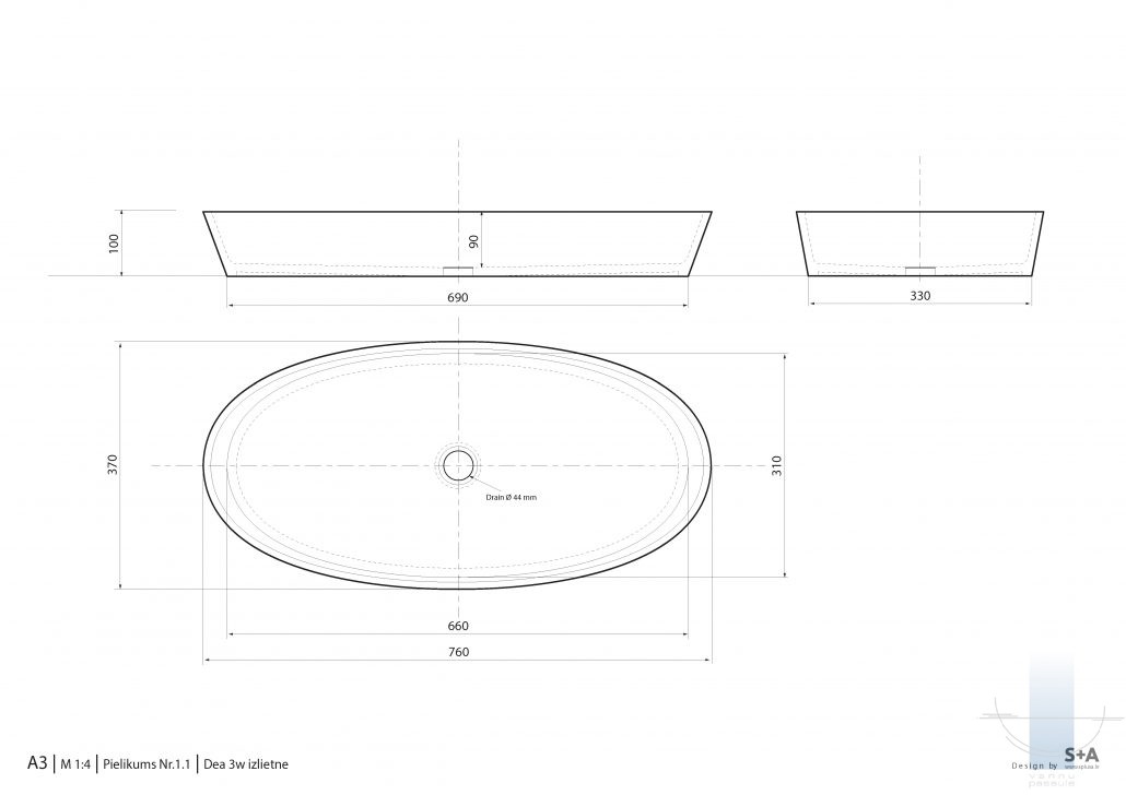 Vispool izlietne bez pārplūdes D3 760x380 mm, Balta