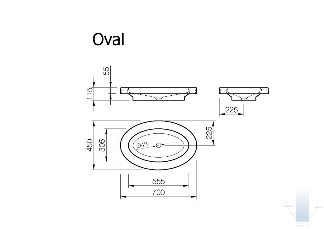 Vispool izlietne bez pārplūdes Oval 700x450 mm, Balta